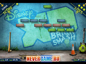 Перед Вами очень динамичная и увлекательная игра. С помощью скейтборда и мячика Вы должны разбивать кирпичики. Сделать это не сложно! Просто отбивайте скейтбордом мячик и не давайте ему упасть. Делать это нужно быстро и аккуратно. А еще постарайтесь ловить бонусы. Так и проходите уровень за уровнем. Эта игра не даст Вам заскучать!